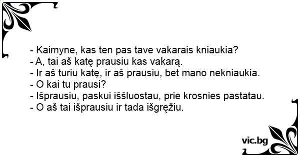 - Kaimyne, kas ten pas tave vakarais kniaukia?
