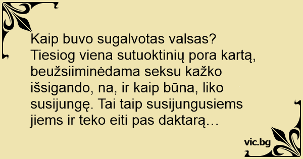Tiesiog viena sutuoktinių pora kartą, beužsiiminėdama seksu kažko išsigando, na, ir kaip būna, liko susijungę. Tai taip susijungusiems jiems ir teko eiti pas daktarą…