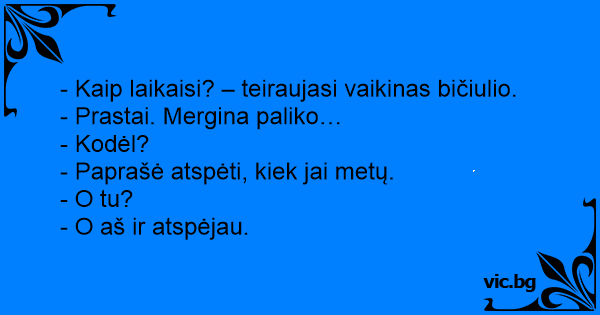 - Kaip laikaisi? – teiraujasi vaikinas bičiulio.