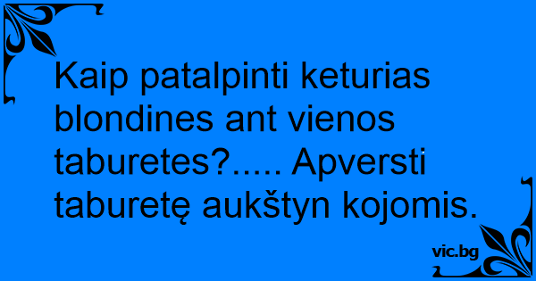 Kaip patalpinti keturias blondines ant vienos taburetes?..... Apversti taburetę aukštyn kojomis.