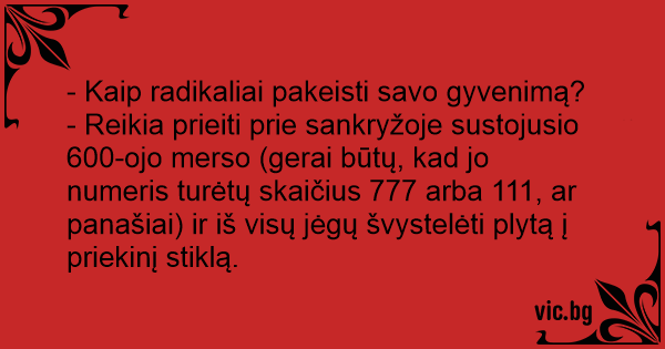 - Reikia prieiti prie sankryžoje sustojusio 600-ojo merso (gerai būtų, kad jo numeris turėtų skaičius 777 arba 111, ar panašiai) ir iš visų jėgų švystelėti plytą į priekinį stiklą.