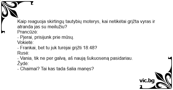 Kaip reaguoja skirtingų tautybių moterys, kai netikėtai grįžta vyras ir atranda jas su meilužiu?