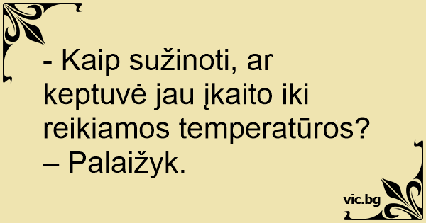 - Kaip sužinoti, ar keptuvė jau įkaito iki reikiamos temperatūros? – Palaižyk.