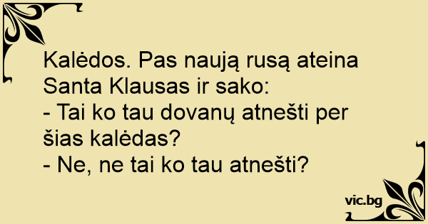 Kalėdos. Pas naują rusą ateina Santa Klausas ir sako: