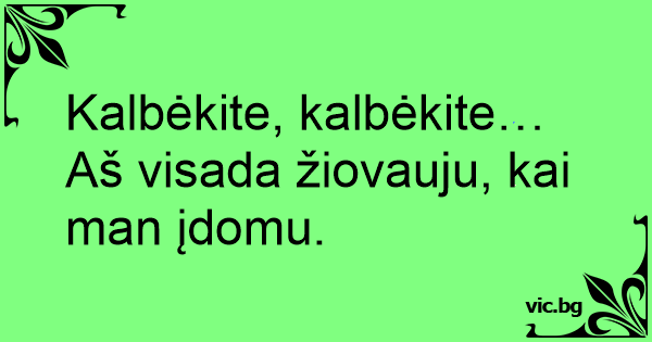 Kalbėkite, kalbėkite… Aš visada žiovauju, kai man įdomu.
