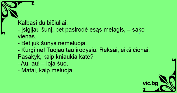 - Įsigijau šunį, bet pasirodė esąs melagis, – sako vienas.