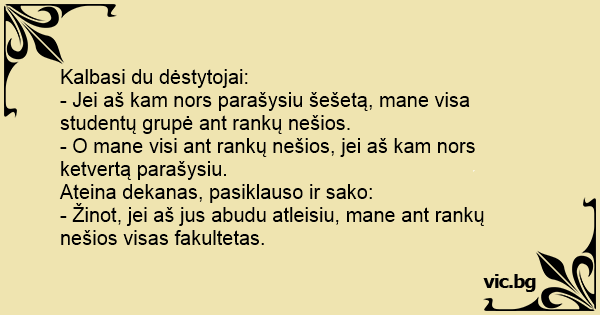 - Jei aš kam nors parašysiu šešetą, mane visa studentų grupė ant rankų nešios.