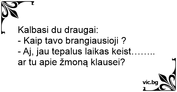 - Aj, jau tepalus laikas keist…….. ar tu apie žmoną klausei?