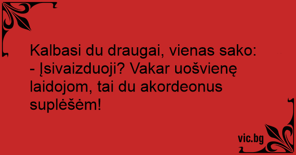 - Įsivaizduoji? Vakar uošvienę laidojom, tai du akordeonus suplėšėm!