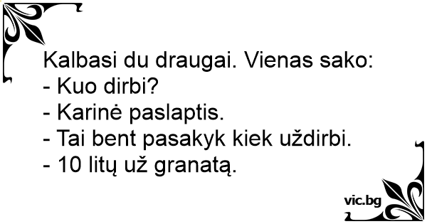 Kalbasi du draugai. Vienas sako: