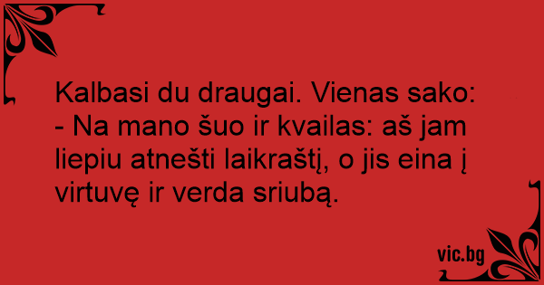 Kalbasi du draugai. Vienas sako: