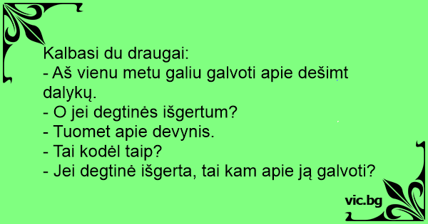 - Jei degtinė išgerta, tai kam apie ją galvoti?
