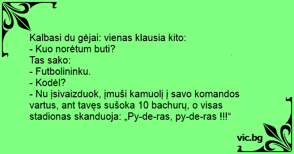 - Nu įsivaizduok, įmuši kamuolį į savo komandos vartus, ant tavęs sušoka 10 bachurų, o visas stadionas skanduoja: „Py-de-ras, py-de-ras !!!“