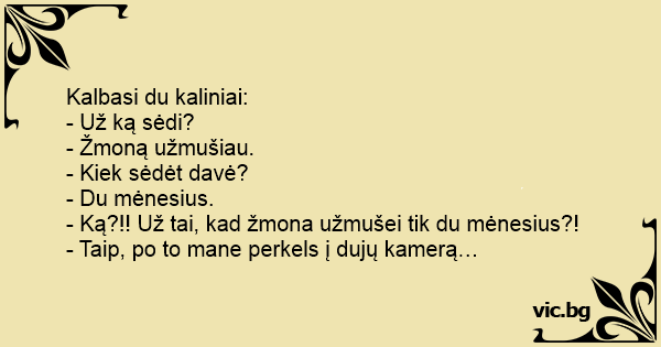 - Ką?!! Už tai, kad žmona užmušei tik du mėnesius?!