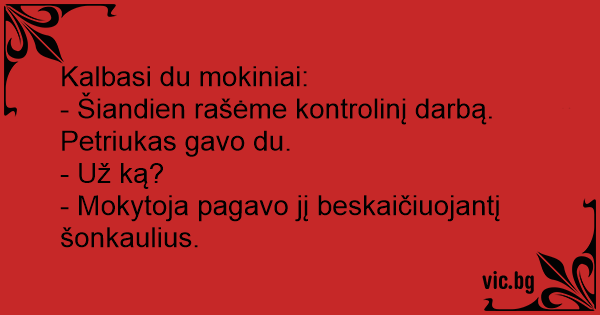 - Šiandien rašėme kontrolinį darbą. Petriukas gavo du.