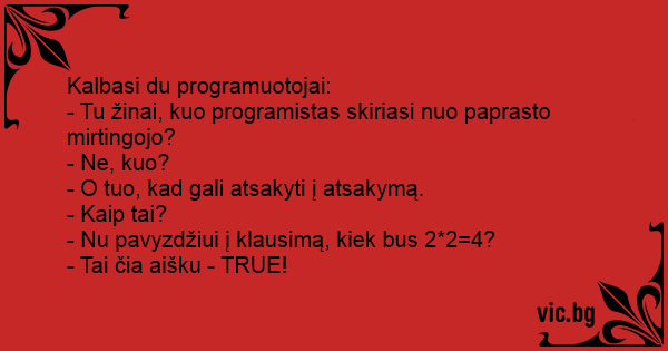 - Tu žinai, kuo programistas skiriasi nuo paprasto mirtingojo?