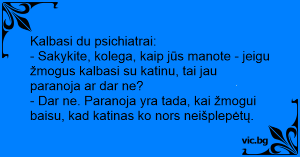 - Sakykite, kolega, kaip jūs manote - jeigu žmogus kalbasi su katinu, tai jau paranoja ar dar ne?