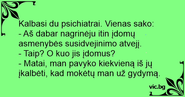 - Matai, man pavyko kiekvieną iš jų įkalbėti, kad mokėtų man už gydymą.