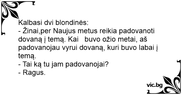- Žinai,per Naujus metus reikia padovanoti dovaną į temą. Kai buvo ožio metai, aš padovanojau vyrui dovaną, kuri buvo labai į temą.