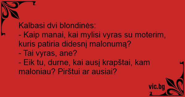 - Eik tu, durne, kai ausį krapštai, kam maloniau? Pirštui ar ausiai?