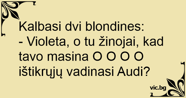 - Violeta, o tu žinojai, kad tavo masina O O O O ištikrųjų vadinasi Audi?