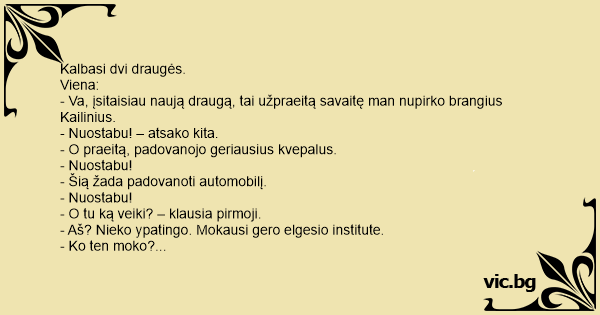 - Va, įsitaisiau naują draugą, tai užpraeitą savaitę man nupirko brangius
