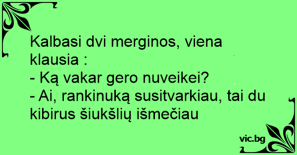- Ai, rankinuką susitvarkiau, tai du kibirus šiukšlių išmečiau