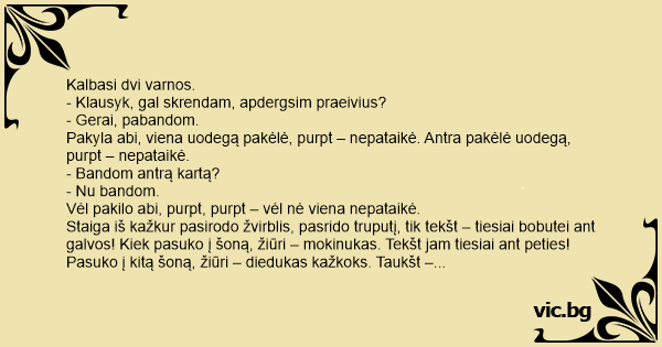 Pakyla abi, viena uodegą pakėlė, purpt – nepataikė. Antra pakėlė uodegą, purpt – nepataikė.
