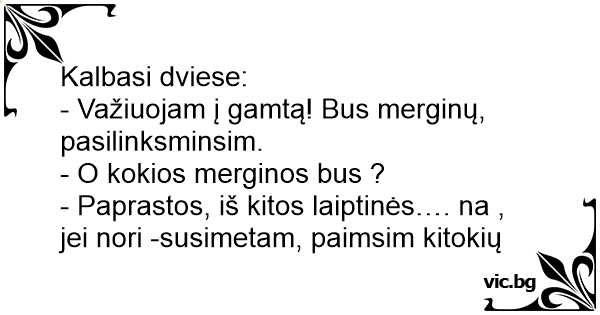 - Važiuojam į gamtą! Bus merginų, pasilinksminsim.