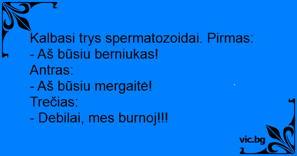 Kalbasi trys spermatozoidai. Pirmas: