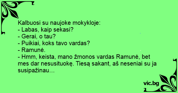 - Hmm, keista, mano žmonos vardas Ramunė, bet mes dar nesusituokę. Tiesą sakant, aš neseniai su ja susipažinau…
