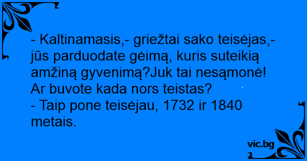 - Kaltinamasis,- griežtai sako teisėjas,- jūs parduodate gėimą, kuris suteikią amžiną gyvenimą?Juk tai nesąmonė! Ar buvote kada nors teistas?