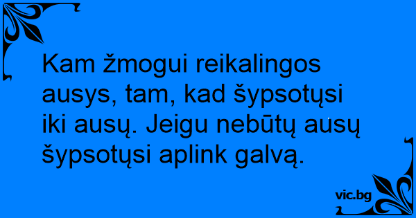 Kam žmogui reikalingos ausys, tam, kad šypsotųsi iki ausų. Jeigu nebūtų ausų šypsotųsi aplink galvą.