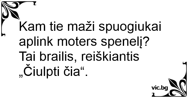 Kam tie maži spuogiukai aplink moters spenelį? Tai brailis, reiškiantis „Čiulpti čia“.