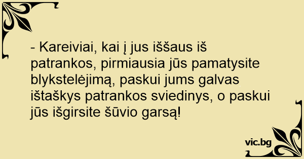 - Kareiviai, kai į jus iššaus iš patrankos, pirmiausia jūs pamatysite blykstelėjimą, paskui jums galvas ištaškys patrankos sviedinys, o paskui jūs išgirsite šūvio garsą!