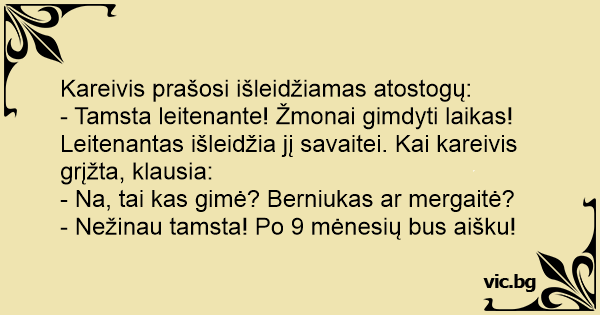 - Tamsta leitenante! Žmonai gimdyti laikas!