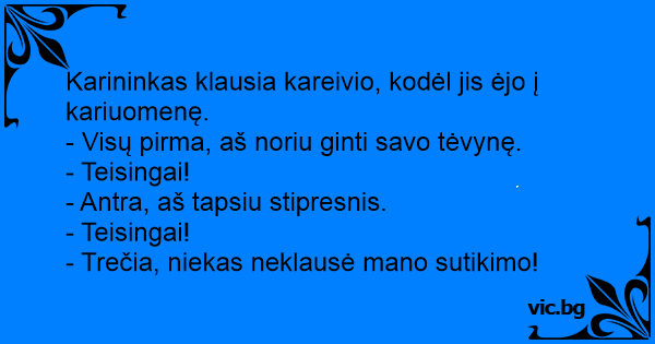 Karininkas klausia kareivio, kodėl jis ėjo į kariuomenę.