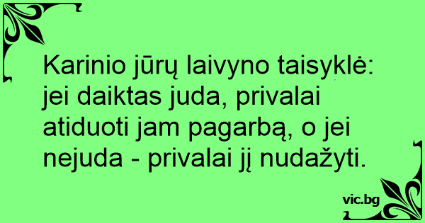 Karinio jūrų laivyno taisyklė: jei daiktas juda, privalai atiduoti jam pagarbą, o jei nejuda - privalai jį nudažyti.