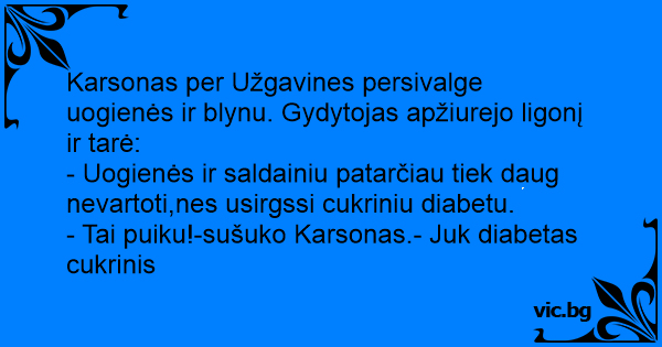 - Tai puiku!-sušuko Karsonas.- Juk diabetas cukrinis