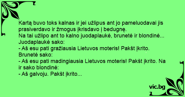 Na tai užlipo ant to kalno juodaplaukė, brunetė ir blondinė... Juodaplaukė sako: