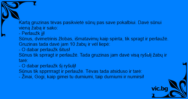 Sūnus tik spprrrragt ir perlaužė. Tėvas tada atsiduso ir tarė: