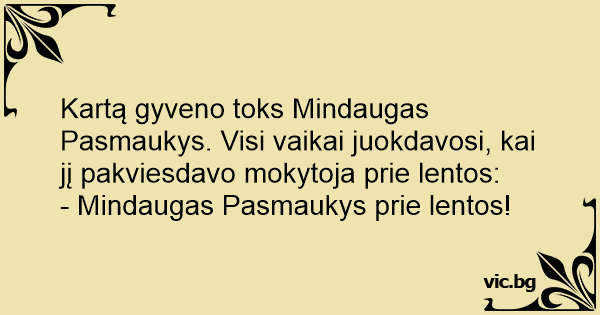 Kartą gyveno toks Mindaugas Pasmaukys. Visi vaikai juokdavosi, kai jį pakviesdavo mokytoja prie lentos: