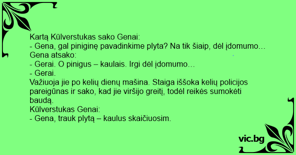 - Gena, trauk plytą – kaulus skaičiuosim.