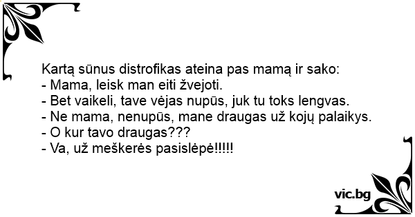 Kartą sūnus distrofikas ateina pas mamą ir sako: