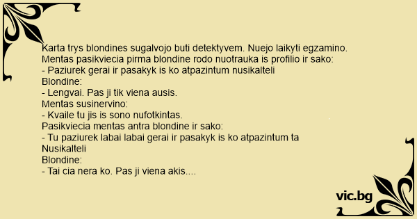 Pasikviecia mentas antra blondine ir sako: