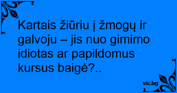 Kartais žiūriu į žmogų ir galvoju – jis nuo gimimo idiotas ar papildomus kursus baigė?..