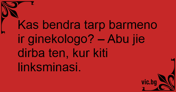 Kas bendra tarp barmeno ir ginekologo? – Abu jie dirba ten, kur kiti linksminasi.