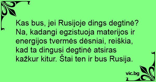 Kas bus, jei Rusijoje dings degtinė? Na, kadangi egzistuoja materijos ir energijos tvermės dėsniai, reiškia, kad ta dingusi degtinė atsiras kažkur kitur. Štai ten ir bus Rusija.