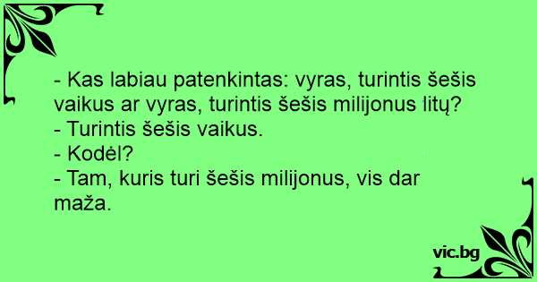 - Kas labiau patenkintas: vyras, turintis šešis vaikus ar vyras, turintis šešis milijonus litų?