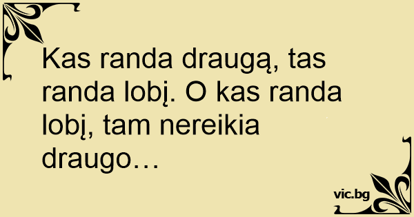 Kas randa draugą, tas randa lobį. O kas randa lobį, tam nereikia draugo…